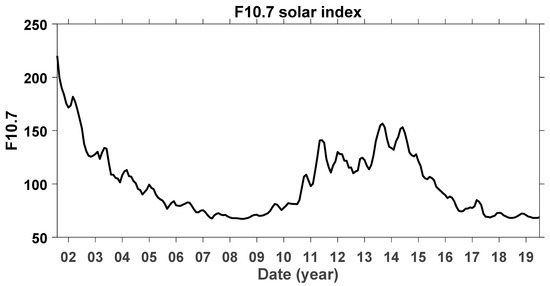 - Liu, L.B.; Wan, W.X.; Ning, B.Q.; Pirog, O.M.; Kurkin, V.I. Solar activity variations of the ionospheric peak electron density. J. Geophys. Res.-Space Phys. 2006, 111. [Google Scholar] [CrossRef]