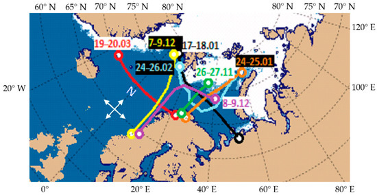 - Nikitin, M.A.; Rivin, G.S.; Rozinkina, I.A.; Chumakov, M.M. Identification of polar cyclones above the Kara Sea waters using hydrodynamic modelling. Vesti Gazov. Nauki 2015, 22, 106–112. (In Russian) [Google Scholar]