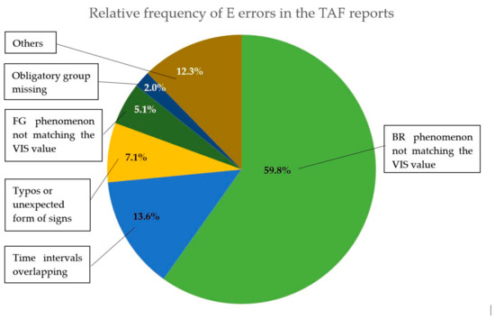 The most frequent error is discordance between the reporting of an occurrence of mist (BR) and the reported value of visibility. The error often appears in change groups where visibility values change from the interval 1–5 km to values outside of that, and the end of the mist phenomenon is not taken into account at the same time. The error during change for values lower than 1 km occurs in only three cases.
