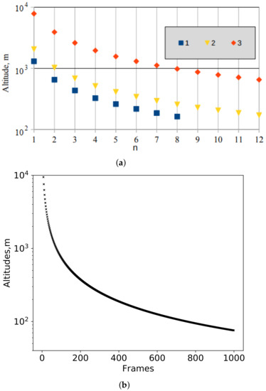 - Heights of atmospheric layers are determined by Formula (8)where is zenith angle to recalculate distance to the height, is the distance between centers of analyzed subapertures. During the day, the Sun changes its angle in azimuth as well as zenith. Knowing the time between frames , we can determine the angle between light beams at different moments in time.