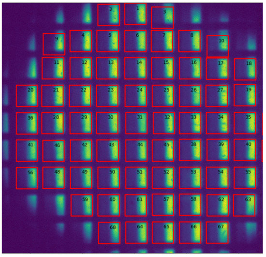 We have experience in both determining wavefront distortions [22,23] and developing methods for determining vertical profiles [21,24]. The example of the Hartmann pattern obtained at the Large Solar Vacuum Telescope is shown in Figure 4. Main parameters of LSVT and Shack–Hartmann wavefront sensor used are given in Table 1. Measurements of the wavefront have been performed for the time period from 26 June to 28 June 2018.