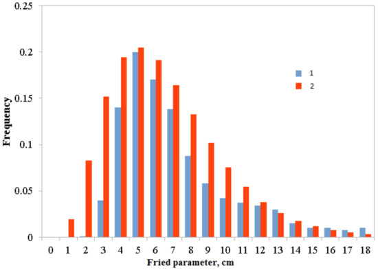 The repeatability probability function of the Fried parameter measured by DIMM at the Sayan solar observatory site is shown by blue bars in Figure 5. Red bars correspond to the repeatability probability function of the Fried parameter calculated using Formula (9).