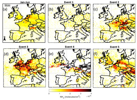 Concerning event 1, no significant NH3 enhancement was observed from the IASI and mini-DOAS observations (Figure 2). During this event, the pollution was transported from three directions (east, south, and west) according to the FLEXPART map (Figure 4).
