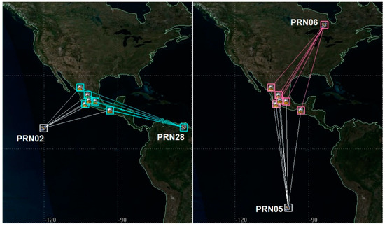 Figure 9 illustrates the ground projection of GPS satellite tracks selected to observe the ionospheric response to SAWs and the meteoroid trajectory with respect to receiver locations. The plot for TNGF is almost identical to IPN1 and not shown for the economy of space. The LoSs between PRN28 and PRN02 satellites and UCOE and UJUR receivers were the closest to the meteoroid trajectory. The only LoS at which the response to SAW was observed southward from the meteoroid trajectory was PRN05-OXUM.