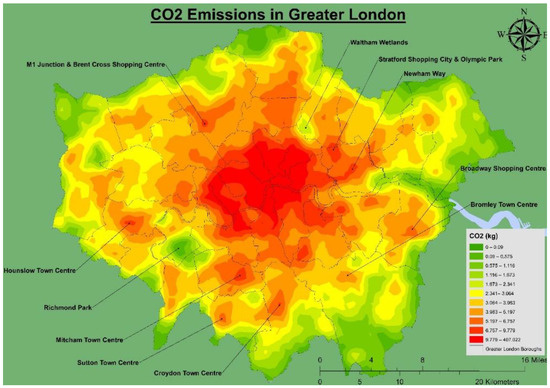 However, over- and underestimations cannot be solely attributed to each modelling approach per se, but can be related to limitations in methodology and available data [8]. In our approach, one has also to consider modelling limitations, such as the classification and regression outcomes, the length of roads within the study area and the study area per se. First, from Table A2 one can observe that classification accuracy is significantly higher for ‘A’ roads, as opposed to other road classes, although accuracy for ‘U’ roads is relatively high as well (70%). Thus, an uncertainty in the classification of points and consequently in the estimation of AADT and VKT can result in biased emission estimations. However, from Table 2 one can see that VKT on ‘A’ roads and Motorways account for over 50% of total VKT. Including ‘U’ roads, the percentage is 68% indicating that for most modelled street segments, emissions are correctly estimated. Moreover, taking into account classification accuracy for ‘A’ roads as well as the fact that there is a large sample to train the algorithm for this road class and that AADT on motorways is directly counted—and not estimated with a model—we can also conclude that results for these two road types are more reliable as opposed to other road classes. Second, roads have been spatially clipped so as not to extend further than the Greater London boroughs and associated boundaries. That is, initial street segment lengths could be longer affecting estimation of VKT and related emissions. This can significantly affect estimations for motorways and attached outer London boroughs, where one can observe that even though these road types usually carry heavy traffic, VKT accounts for a smaller fraction of the total, due to the short length within the study area. Finally, the occurrence of satellite cities (i.e., smaller settlements around larger cities, separated from the metropolitan core by belts of rural territories [72,73]) attached to but outside Greater London can significantly affect emissions on the edges of the study area, an effect that cannot be captured in our study.