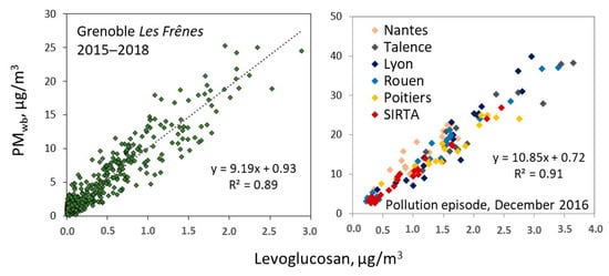 Wood burning has been described as a major source of wintertime PM pollution in some of the largest French cities for more than ten years [50,51,72,73]. Yet, it is still a subject of great scientific and political concern, notably due to possible conflicting interest in policy strategies promoting the use of renewable energies.