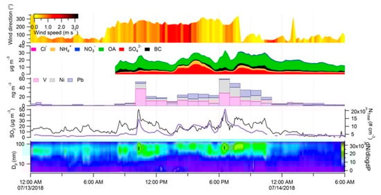 - Chazeau, B.; Temime-Roussel, B.; Gille, G.; Mesbah, B.; D’Anna, B.; Wortham, H.; Marchand, N. Measurement Report: Long-Term Real-Time Characterisation of Thesubmicronic Aerosol and Its Atmospheric Dynamic in a Mediterraneancoastal City: Tracking the Polluted Events at the Marseille-Longchampsupersite. Aerosols/Field Measurements/Troposphere/Chemistry (Chemical Composition and Reactions). Available online: https://acp.copernicus.org/preprints/acp-2020-1015/ (accessed on 2 February 2021).