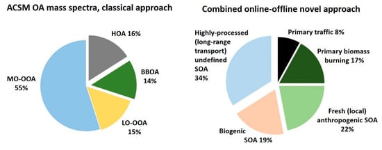 - Srivastava, D.; Favez, O.; Petit, J.-E.; Zhang, Y.; Sofowote, U.M.; Hopke, P.K.; Bonnaire, N.; Perraudin, E.; Gros, V.; Villenave, E.; et al. Speciation of organic fractions does matter for aerosol source apportionment. Part 3: Combining off-line and on-line measurements. Sci. Total Environ. 2019, 690, 944–955. [Google Scholar] [CrossRef]