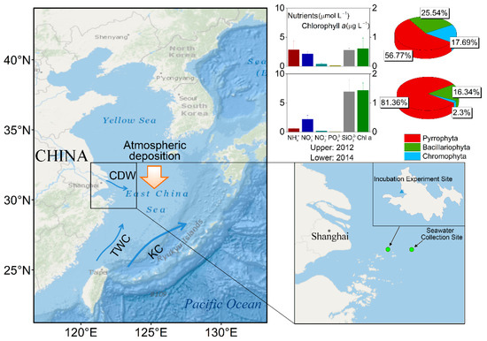 - Meng, X.; Chen, Y.; Wang, B.; Ma, Q.; Wang, F. Responses of phytoplankton community to the input of different aerosols in the East China Sea. Geophys. Res. Lett. 2016, 43, 7081–7088. [Google Scholar] [CrossRef]