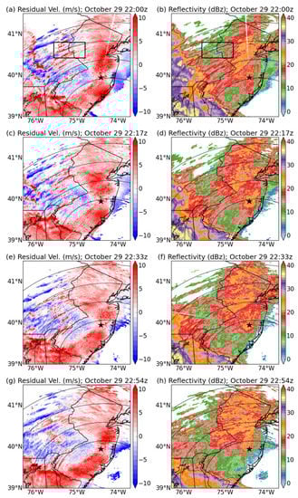 - NOAA National Weather Service (NWS) Radar Operations Center. NOAA Next Generation Radar (NEXRAD) Level 2 Base Data. Products N0U, N0Q. 1991. Available online: https://www.ncei.noaa.gov/access/metadata/landing-page/bin/iso?id=gov.noaa.ncdc:C00345 (accessed on 18 June 2019).