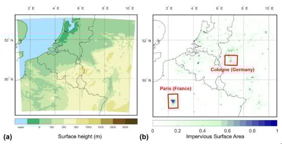 ERA5 is dynamically downscaled in this study at 0.02° (~2.2 km) over part of the Central Europe (Lon = 3° W–10.5° E; Lat = 47.5° N–53.5° N) with the regional climate model COSMO-CLM [] switching on the module TERRA-URB for accounting the urban parameterizations [].