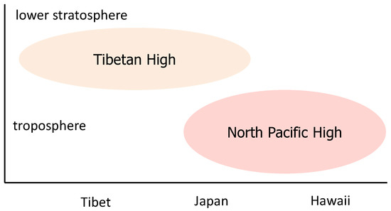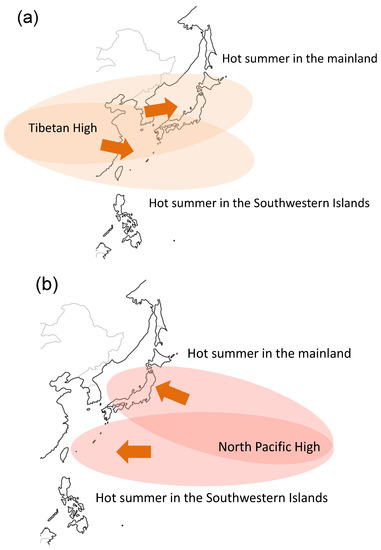 Inoue, M.; Ugajin, A.; Kiguchi, O.; Yamashita, Y.; Komine, M.; Yamakawa, S. Effects of the Tibetan High and the North Pacific High on the Occurrence of Hot or Cool Summers in Japan. Atmosphere 2021, 12, 307. https://doi.org/10.3390/atmos12030307