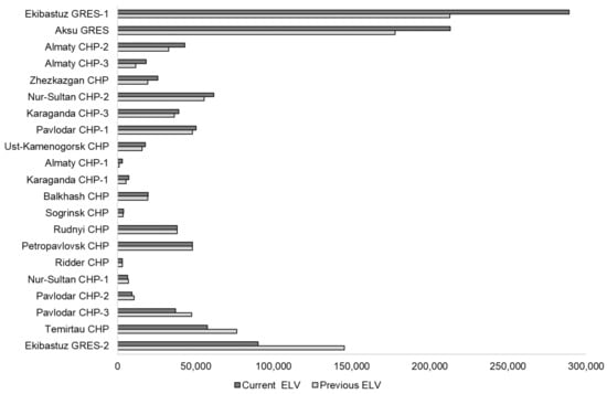 Permitting documents of industrial enterprises are taken from the reports of the state environmental expertise on the website of electronic licensing of Kazakhstan http://elicense.kz/ (accessed on 23 April 2020). The ELVs (emission limit values) that are reported in the permitting documents of major industrial enterprises in the power and metallurgy sectors are analyzed. We evaluated the efficiency of environmental regulations and changes in recent years by comparing the existing (valid at the time of this study) with the previous (valid in the previous permitting period) ELVs of the major industrial enterprises.