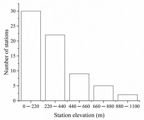 The numberof meteorological stations at different elevations.