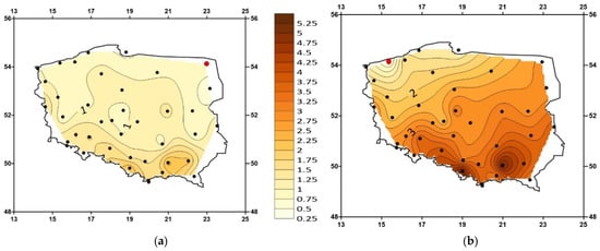 - Kejna, M.; Rudzki, M. Spatial diversity of air temperature changes in Poland in 1961–2018. Theor. Appl. Climatol. 2021, in press. [Google Scholar] [CrossRef]