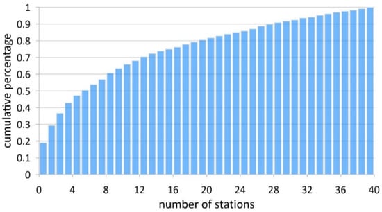 Out of all hot days in Poland, in almost 19% of cases, the thermal threshold was exceeded only at one station (Figure 5). During 50% of hot days, a heat threshold was exceeded at no more than eight stations. However, during 50% of hot days, the threshold was exceeded simultaneously on more than half of the stations surveyed.