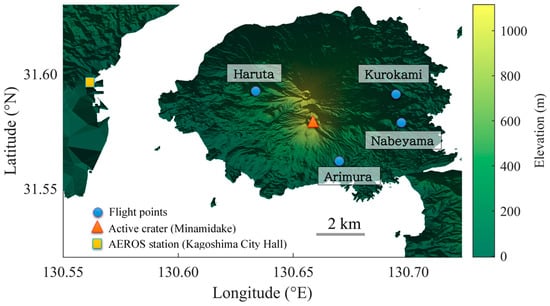 - Poulidis, A.P.; Takemi, T.; Shimizu, A.; Iguchi, M.; Jenkins, S.F. Statistical analysis of dispersal and deposition patterns of volcanic emissions from Mt. Sakurajima, Japan. Atmos. Environ. 2018, 179, 305–320. [Google Scholar] [CrossRef]