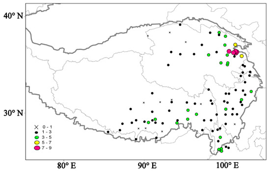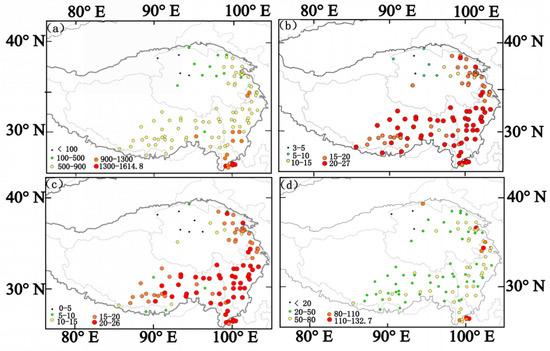 - You, Q.; Kang, S.; Aguilar, E.; Yan, Y.P. Changes in daily climate extremes in the eastern and central Tibetan Plateau during 1961–2005. J. Geophys. Res. Atmos. 2008, 113, 1639–1647. [Google Scholar] [CrossRef]
