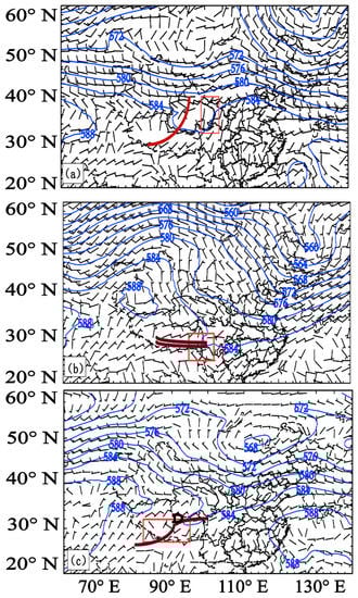 - Li, G.P.; Li, S.S.; Huang, C.H. Research status and prospect of the interaction between Tibetan Plateau shear line and Tibetan Plateau vortex. J. Adv. Earth Sci. 2017, 32, 919–925. (In Chinese) [Google Scholar]