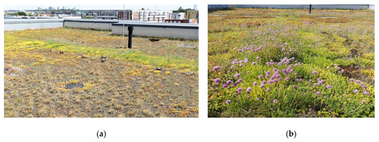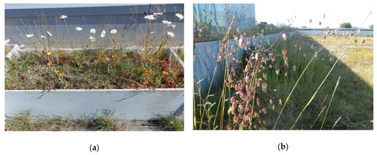 - Schröder, R.; Kiehl, K. Extensive roof greening with native sandy dry grassland species: Effects of different greening methods on vegetation development over four years. Ecol. Eng. 2020, 145, 105728. [Google Scholar] [CrossRef]