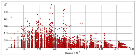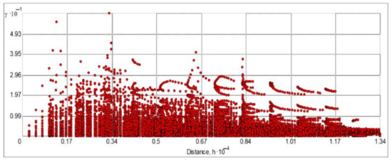 Normally, with the semivariogram, the variation of the values should increase with distance, but in this case, the clouds are not illustrating the expected results. The tendency of the geographic relationships is not within the expected range mainly due to the character of data collection. Some points are unevenly distributed, also located on the edges of the measured network or more influenced by neighboring points when they are more clustered. The semivariogram for the IDW method represents the high average rate of change of data property with distance and not significant consistency of the variable through space (Figure 9).