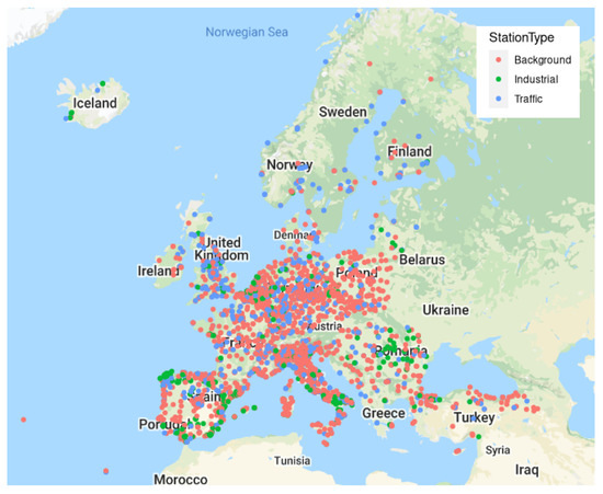 - European Environment Agency. European Environment Agency—Air Quality e-Reporting (AQ e-Reporting). 2018. Available online: https://www.eea.europa.eu/data-and-maps/data/aqereporting-8 (accessed on 16 March 2021).