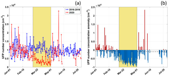 - Hudda, N.; Matthew, C.; Patton, S.A.P.; Durant, J.L. Reductions in traffic-related black carbon and ultrafine particle number concentrations in an urban neighborhood during the COVID-19 pandemic. Sci. Total Environ. 2020, 742, 140931. [Google Scholar] [CrossRef]