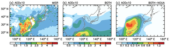 - Kim, M.K.; Lau, W.K.M.; Kim, K.M.; Lee, W.S. A GCM Study of Effects of Radiative Forcing of Sulfate Aerosol on Large Scale Circulation and Rainfall in East Asia during Boreal Spring. Geophys. Res. Lett. 2007, 34, L24701. [Google Scholar] [CrossRef]