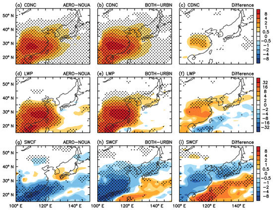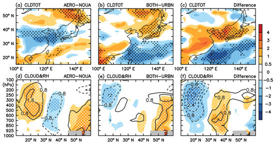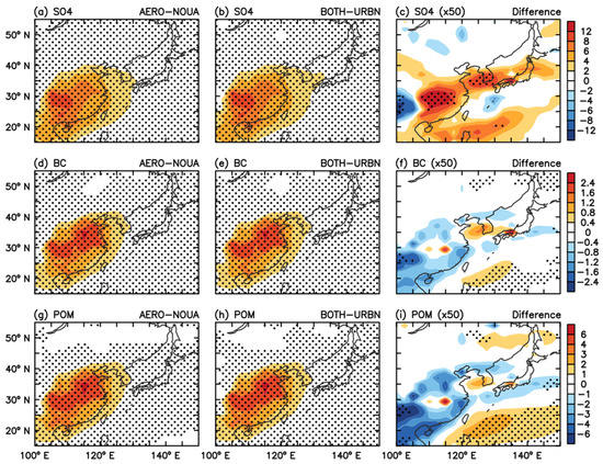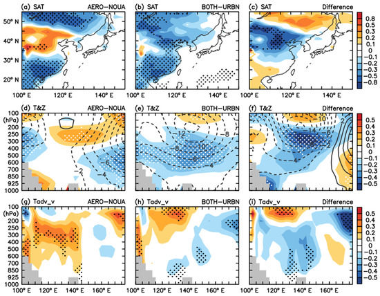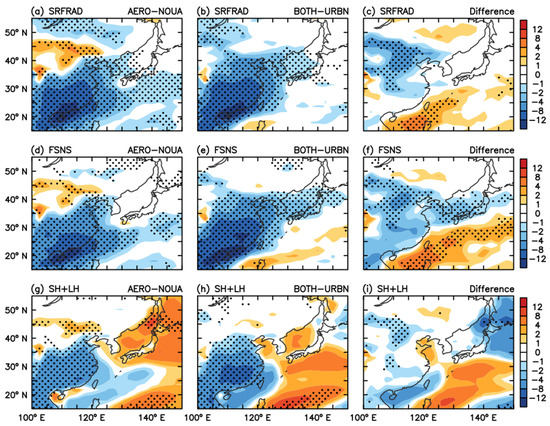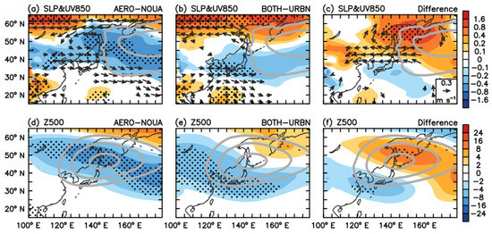- Deng, J.; Xu, H.; Zhang, L. Nonlinear Effects of Anthropogenic Aerosol and Urban Land Surface Forcing on Spring Climate in Eastern China. J. Geophys. Res. Atmos. 2016, 121, 4581–4599. [Google Scholar] [CrossRef][Green Version]