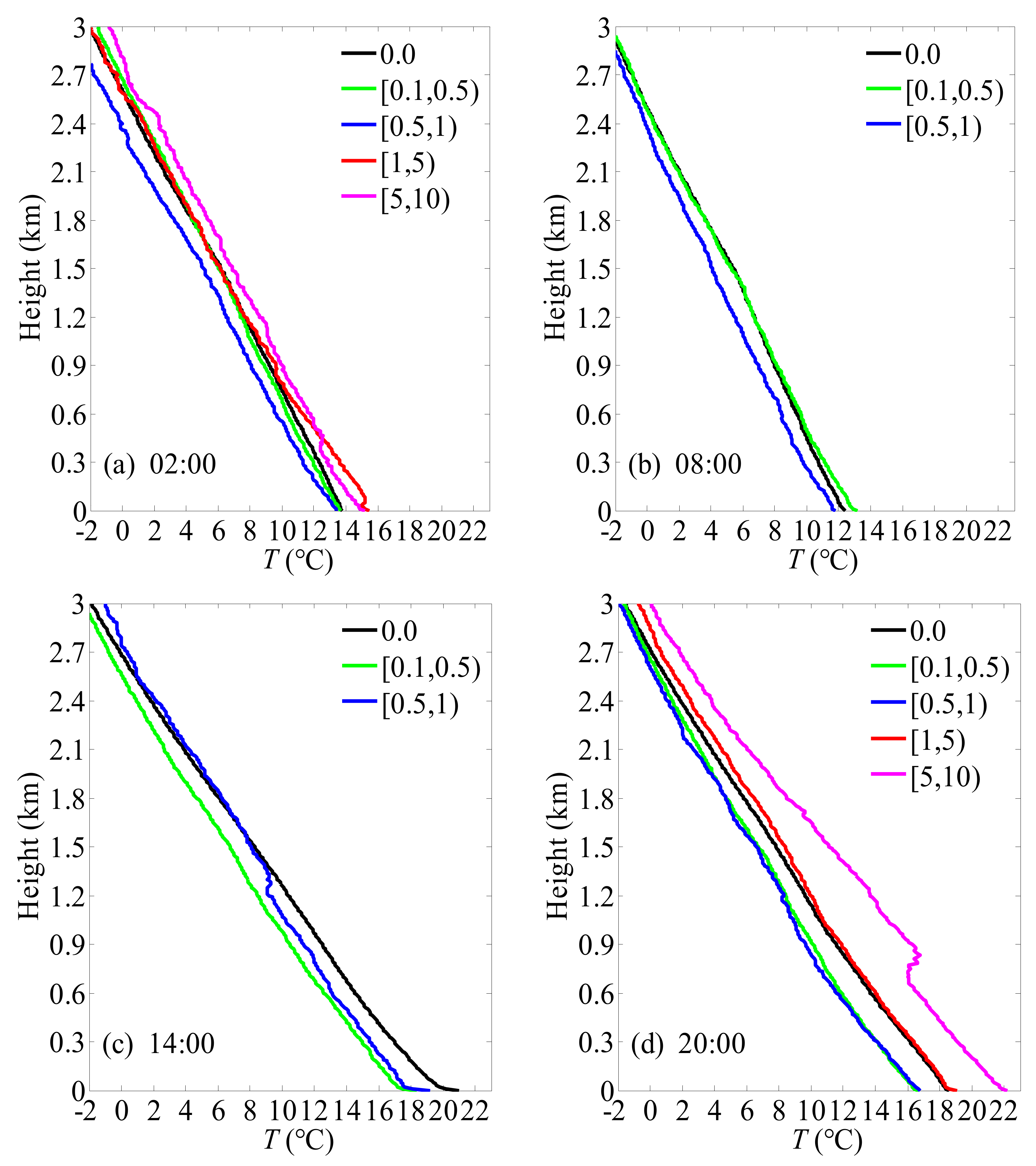 - Lu, P.; Li, Y.Q. Analyses of the boundary layer characteristics by intensive sounding observation data at Jiulong station in summer for 9 years. Plateau Meteor. 2020, 39, 1058–1069. (In Chinese) [Google Scholar] [CrossRef]