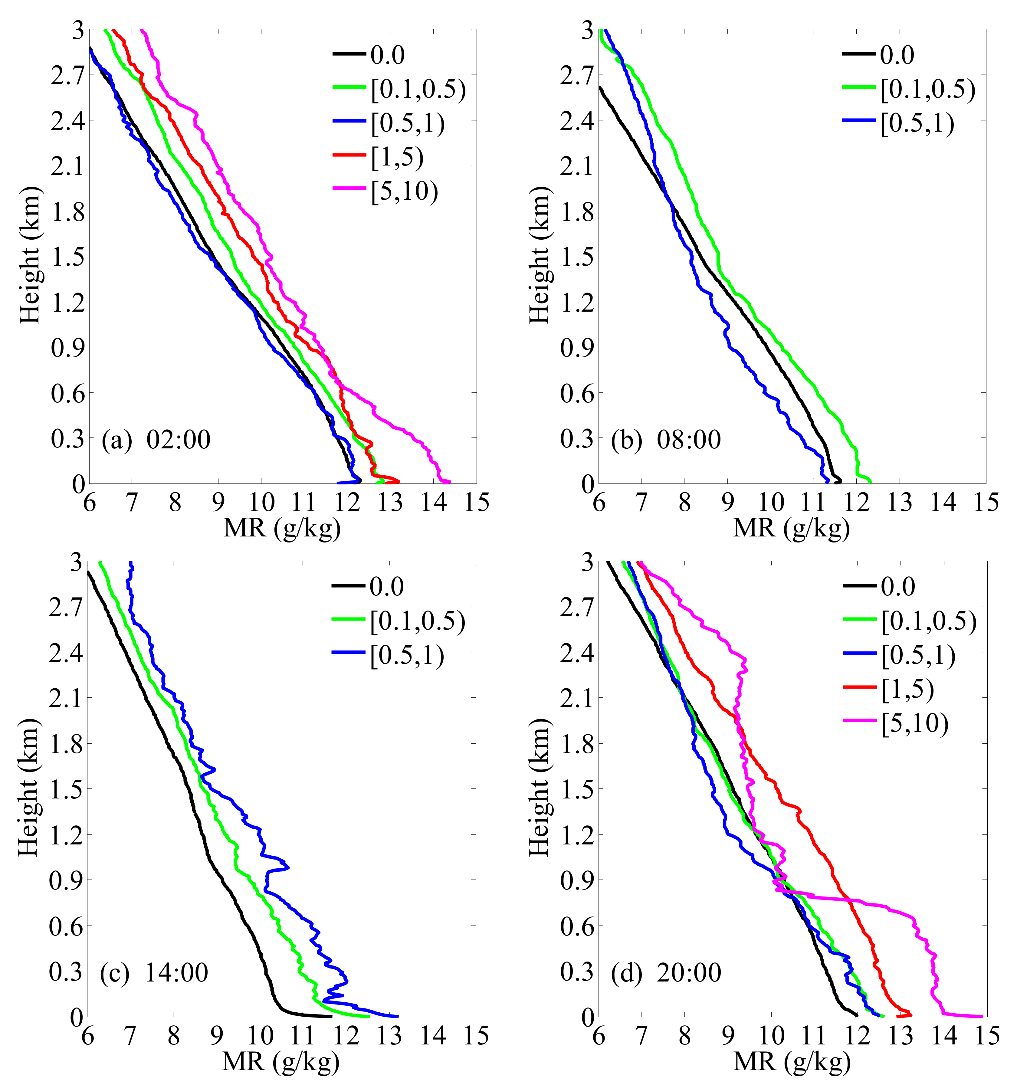 3.2. Thermal and Dynamic Vertical Structures of Summer Hourly Precipitation