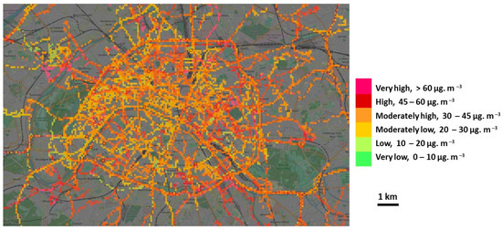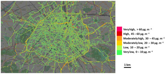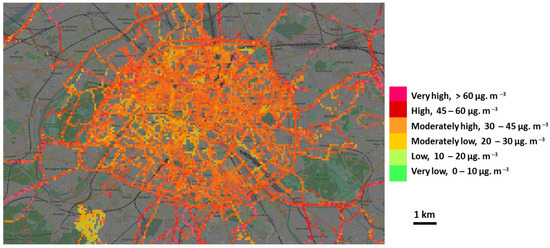 Pollution map in Paris averaged for the 25–27 November 2020. North is up.