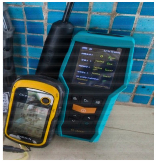 GARMIN eTrex 10 GPS (left) and BR-SMART-126 Portable 4-in-1 air quality monitor (right) used.