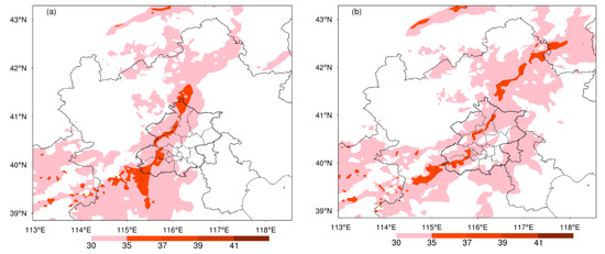 Previous studies have made insightful exploration into the application of ground-based microwave radiometer data in the numerical model. However, few researchers focused on the application of assimilating ground-based microwave radiometer data to regional operational forecast over North China. In particular, for Beijing, being embraced on three sides by mountains, the urban heat island effect, coupled with other factors, increase the difficulty and uncertainty of its precipitation forecast. Currently, although the weather-forecasting technology is capable of forecasting rainfall caused by large-scale weather systems, it is incapable of forecasting local rainfall and does not perform as required with respect to people’s life and production activities, especially in the urban area [31,32]. Thus, reproducing observed urban effect on rainfall can help increase the accuracy of rainfall forecasting in Beijing.