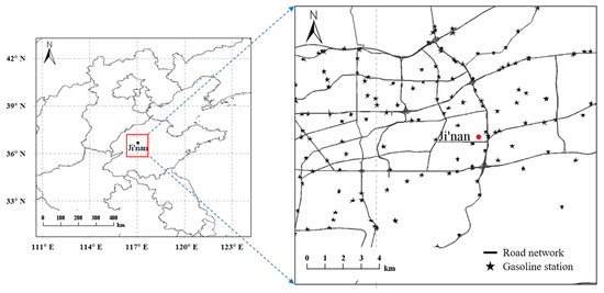 Locations of the measurement site and gasoline stations in Ji’nan.