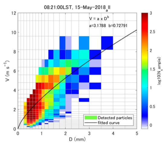 | 3.96 | 0.748 | 0.25 ≤ D < 4 mm (Sakurajima, Parsivel2, 79,170 particles) | Kozono [33] |
