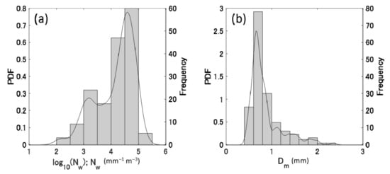 - Testud, J.; Oury, S.; Black, R.A.; Amayenc, P.; Dou, X. The concept of “normalized” distribution to describe raindrop spectra: A tool for cloud physics and cloud remote sensing. J. Appl. Meteorol. 2001, 40, 1118–1140. [Google Scholar] [CrossRef]