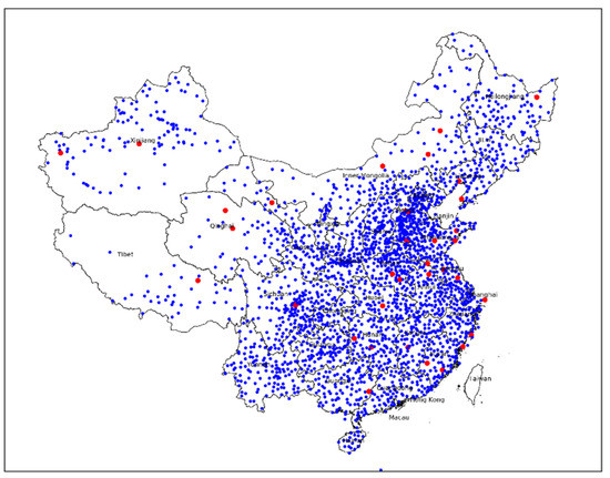 The data employed in this study comprised monthly precipitation data (the daily cumulant in a natural month) acquired from 2416 meteorological observatories covering the period from 1961 to 2019 (the length of the sequence without missing data was greater than 30 years) and 51,062 regional automatic precipitation observation stations from 2015 to 2019, provided by the National Climate Center of China Meteorological Administration. The spatial distribution of the stations is shown in Figure 1.
