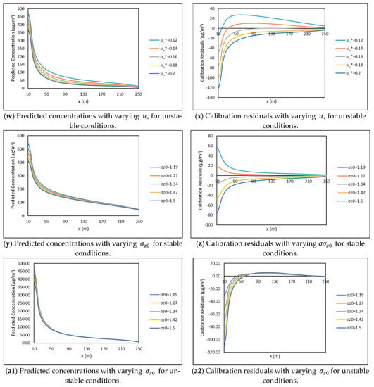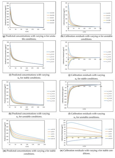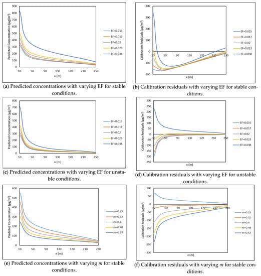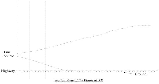 | Benson [40] | 1.98 | Measured values of at various distances downwind from the roadway centerline under crosswind conditions were used to fit the curve. The intercept on the y-axis is the approximate value of . The atmospheric stability conditions are: Pasquill–Gifford (P–G) classes A to E. P–G class E is considered for this value. |
