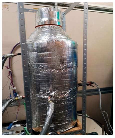 The whole system (Figure 2) was insulated with neoprene panels and covered by aluminum sheets. The control of the temperature of internal surfaces is obtained by the circulation of a water-ethylene glycol solution (20% in volume) whose temperature is controlled by two thermostatic baths. The circulation system [25] of the heat transfer was designed to obtain turbulence conditions with negligible convective heat transfer resistances between the fluid and the enclosure surface (this is also for conductive resistances, due to the reduced thickness of copper tubes) [25].