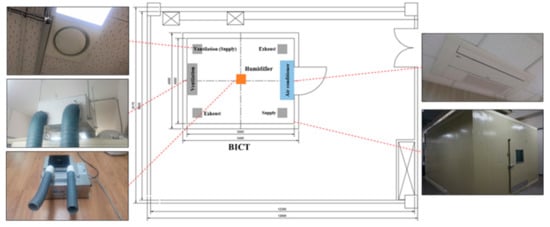 Floor plan of the BICT and indoor environmental control devices.