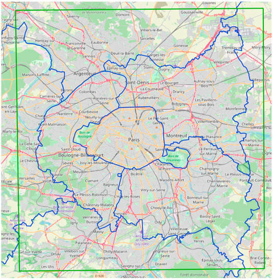 The modeling domain covers Greater Paris: it includes the City of Paris, the Hauts-de-Seine, the Seine-Saint-Denis, and the Val-de-Marne (see Figure 2). It extends to the airports of Orly, to the south, and of Roissy Charles de Gaulle, to the north. This geographic area is under the authority of the Paris Fire Brigade.