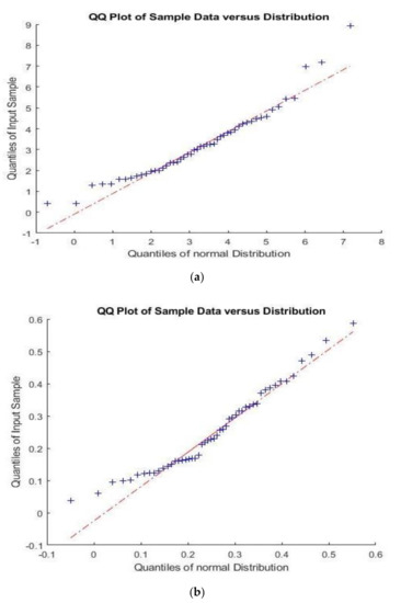 QQ Plot of ki,1 for wind shear and null wind shear cases in March 2015. (a) ki,1 for wind shear; (b) ki,1 for non-wind shear cases.