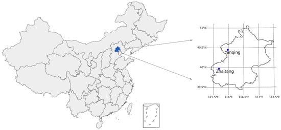 Geographical location of the stations in Beijing, Northeast China.