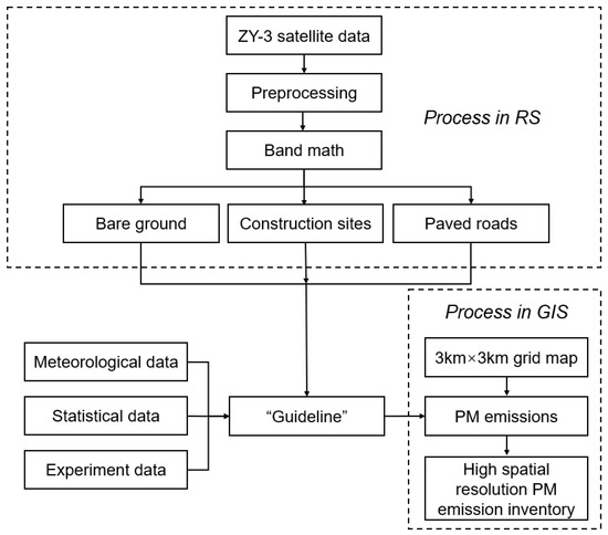 Technical procedures of the RS–GIS approach for establishing PM emission inventory.