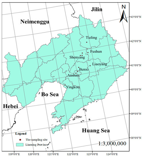 In this study, PM2.5 samples were collected on Teflon filters (Φ = 47mm, Whatman, USA) by PM2.5 samplers (16.7 L/min, Comde-Derenda, Germany). Samples were taken from May 2 to 16 (spring), July 23 to August 6 (summer), October 8 to 22 (fall), and December 7 to 21 (winter), for 23 h a day. To ensure the samples were representative, sampling was avoided during rainy or windy weather. According to the population distribution, scale, industrial layout, and other factors of each city, a total of 10 sampling sites were set up for simultaneous sampling in 7 cities, including 3 in Shenyang, 2 in Anshan, and 1 in each of the other cities (Figure 1). A total of 600 samples (60 for each site) were generated for analysis. Before sampling, the Teflon filters were pre-heated to 60 °C for 4 h and conditioned in a desiccator at 20 ± 0.1 °C and 50 ± 1% relative humidity for 48h. The filters were weighed with a Comde-Derenda AWS-1 automatic weighing system (±1 μg sensitivity, Comde-Derenda, Germany) before and after sampling. Additionally, the blank filters were concurrently collected in four sampling periods for the purpose of eliminating errors. After weighing, the filters were kept in filter boxes and stored in the refrigerator at −20 °C until chemical analysis was performed.