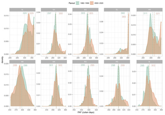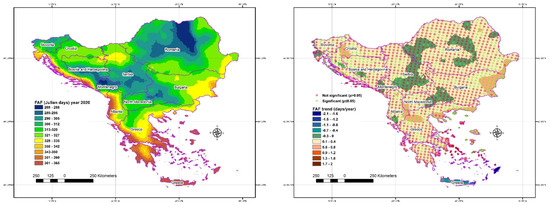- The FAF trend indicates a potential later autumn occurrence over most of the study area, except some mountainous regions of the central Balkans.