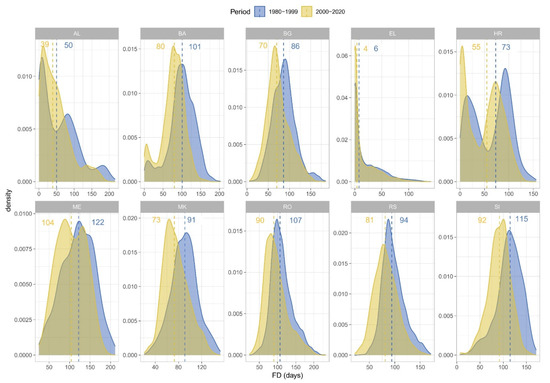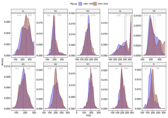 - The trends of FFD reveals that in the near future, the free of frost season would be lengthened for all the studied area, except for south-central Romania, coastal Albania, and an isolated area between Bulgaria and North Macedonia.