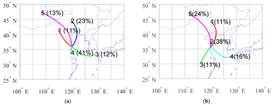 The HYSPLIT clustering algorithm is also a bottom-up merging algorithm in hierarchical clustering, but different from traditional hierarchical clustering, it uses special data preprocessing methods. The specific algorithm can be found in Stunder [26] and Rolph et al. [27]. In the study, the input parameters are values of the trajectory data. The results are selected by the cluster number.