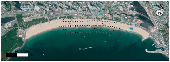 The Ground Control Point (GCP)-surveyed points along Haeundae Beach.